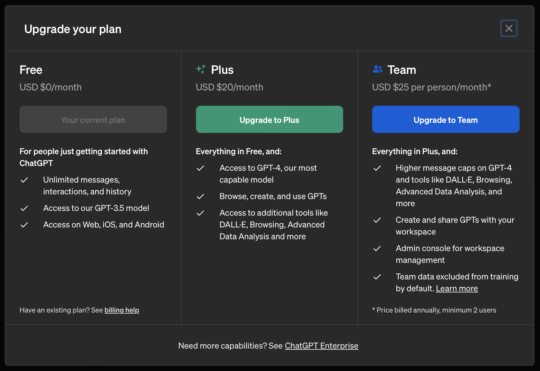 월 20달러를 결제하면 GPT-4와 DALLE등