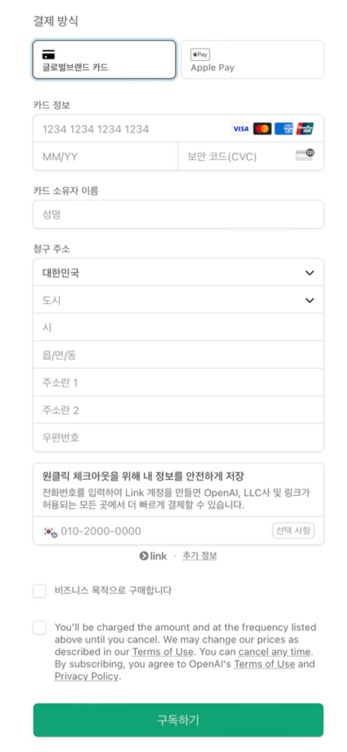 청구 주소의 경우 그냥 한국어로 작성했다.