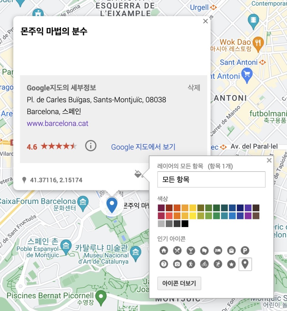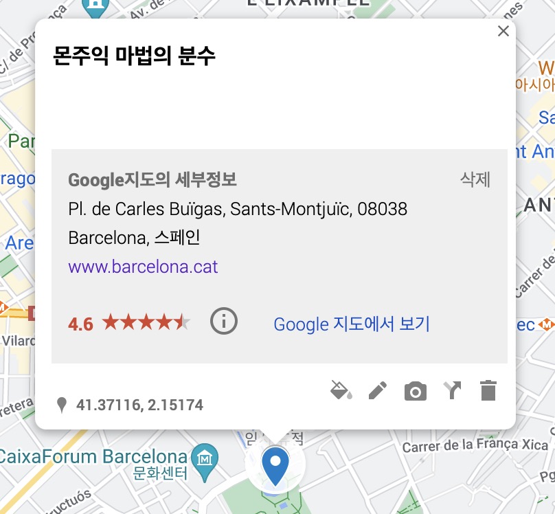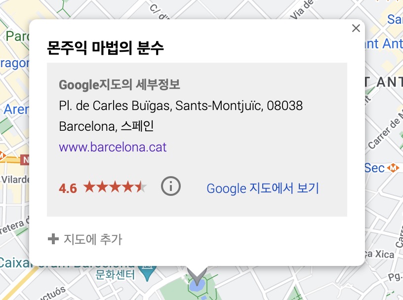 지도에도 핀 모양으로 몬주익 마법의 분수가 추가되었다.