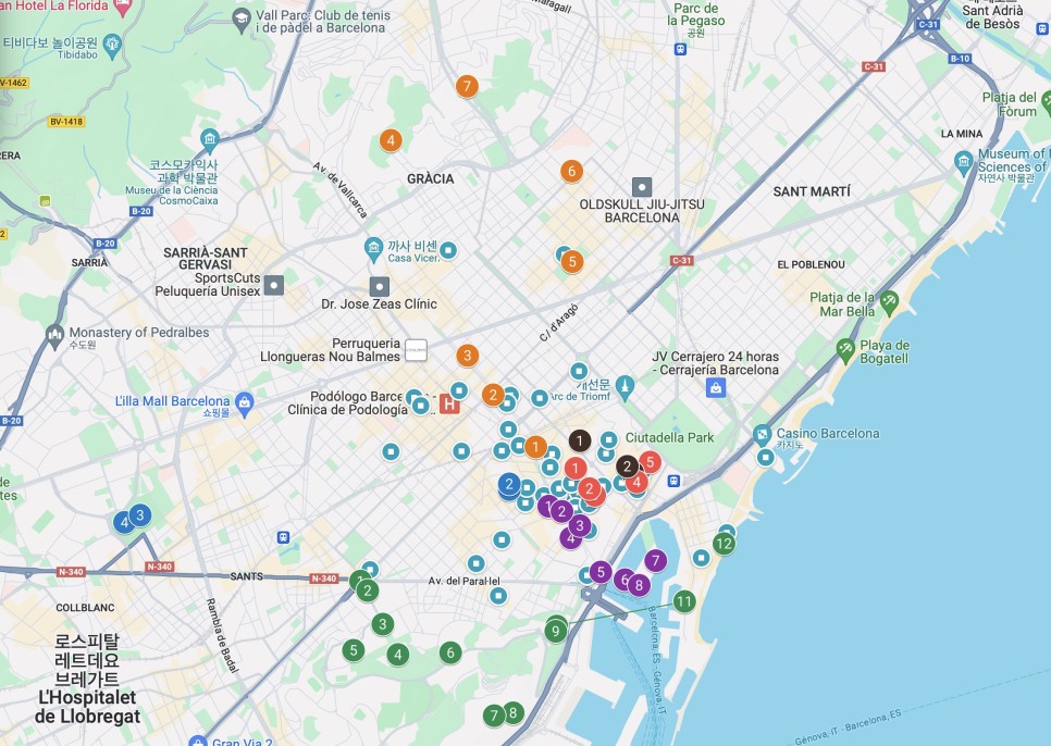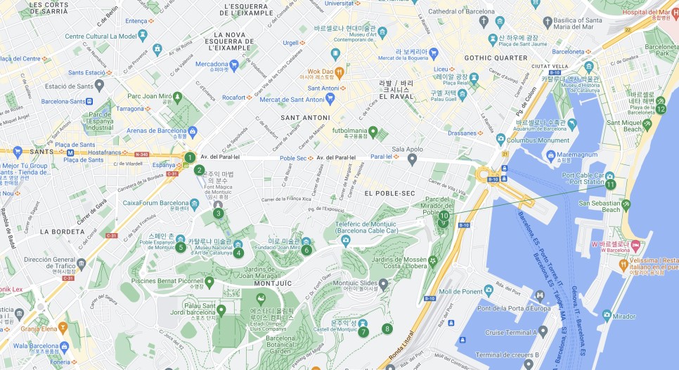 다시 한번 내가 짰던 몬주익 언덕 코스를 보자.